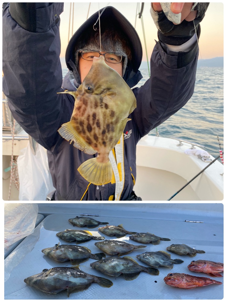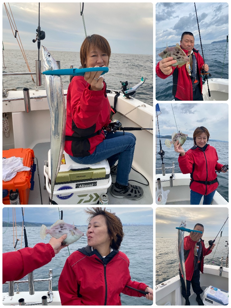 朝から太刀魚!潮の動くタイミングだけ釣れる感じ。お土産は確保出来たのでアタリが少なくなったタイミングで カワハギに移動!